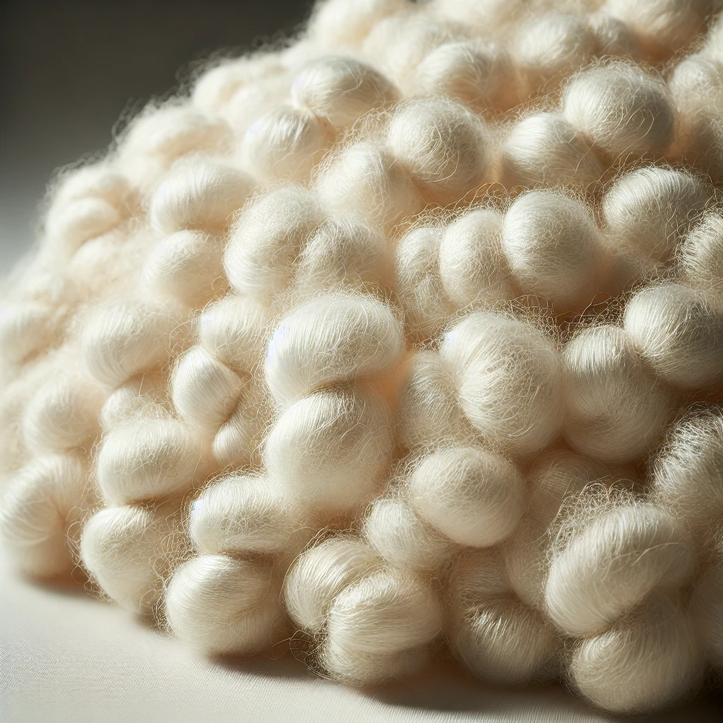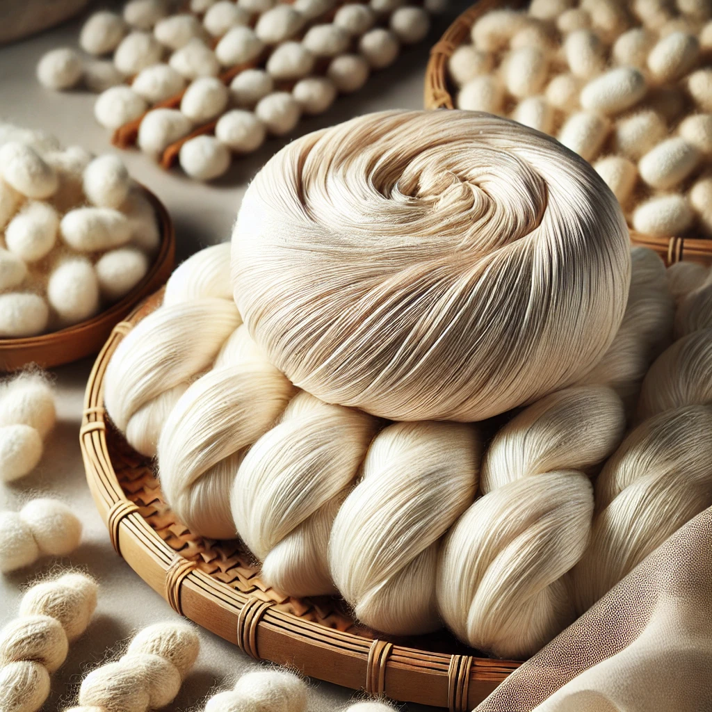 Raw Mulberry Silk: A luxurious, natural fiber derived from silkworms fed exclusively on mulberry leaves. Known for its softness, strength, and organic texture, it is perfect for high-end garments and premium textiles.